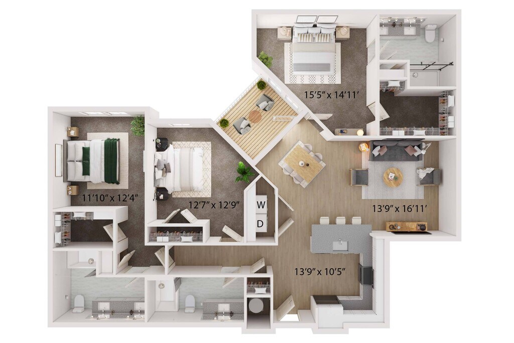 Apartment Model: BluebellFrom $1,8151 Bedroom, 1 Bath, 902 sq ftAvailable Now![]()