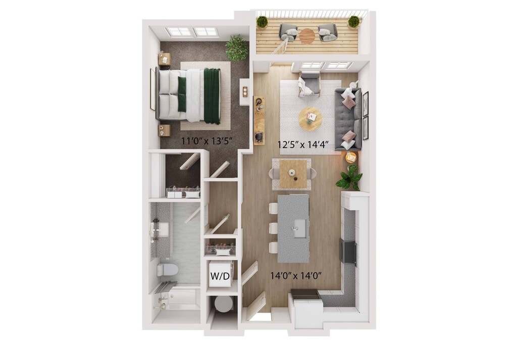 Buttermilk I - Floorplan 1 Apartment Unit: 2103Apartment Model: Buttermilk I$1,6501 Bedroom, 1 Bath, 748 sq ftAvailable NowBluebell
