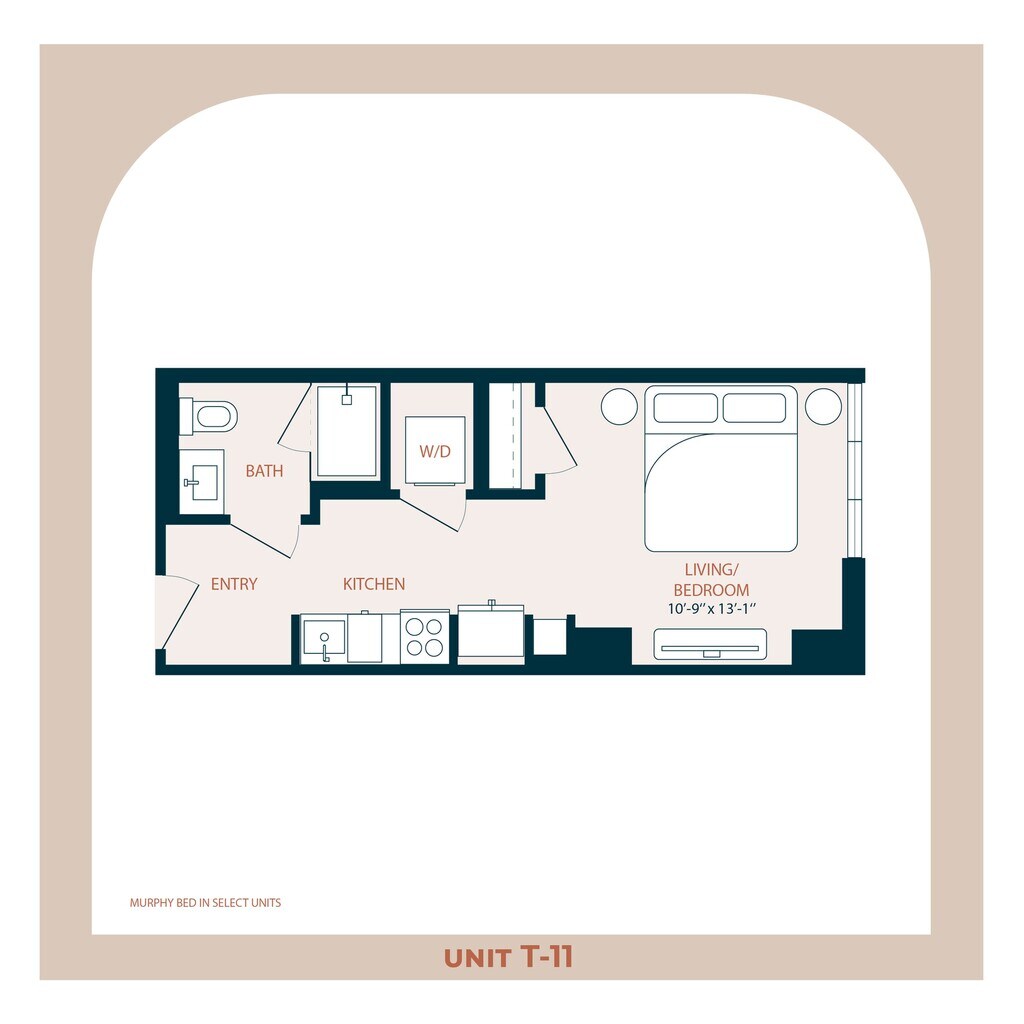 Apartment Model: T-11From $1,725Studio, 1 Bath, 373 sq ftAvailable NowFloor plans are artist's rendering. All dimensions are approximate. Actual product and specifications may vary in dimension or detail. Not all features are available in every rental home. Prices and availability are subject to change. Base rent is based on monthly frequency. Additional fees may apply, such as but not limited to package delivery, trash, water, amenities, etc. Deposits vary. Please see a representative for details.