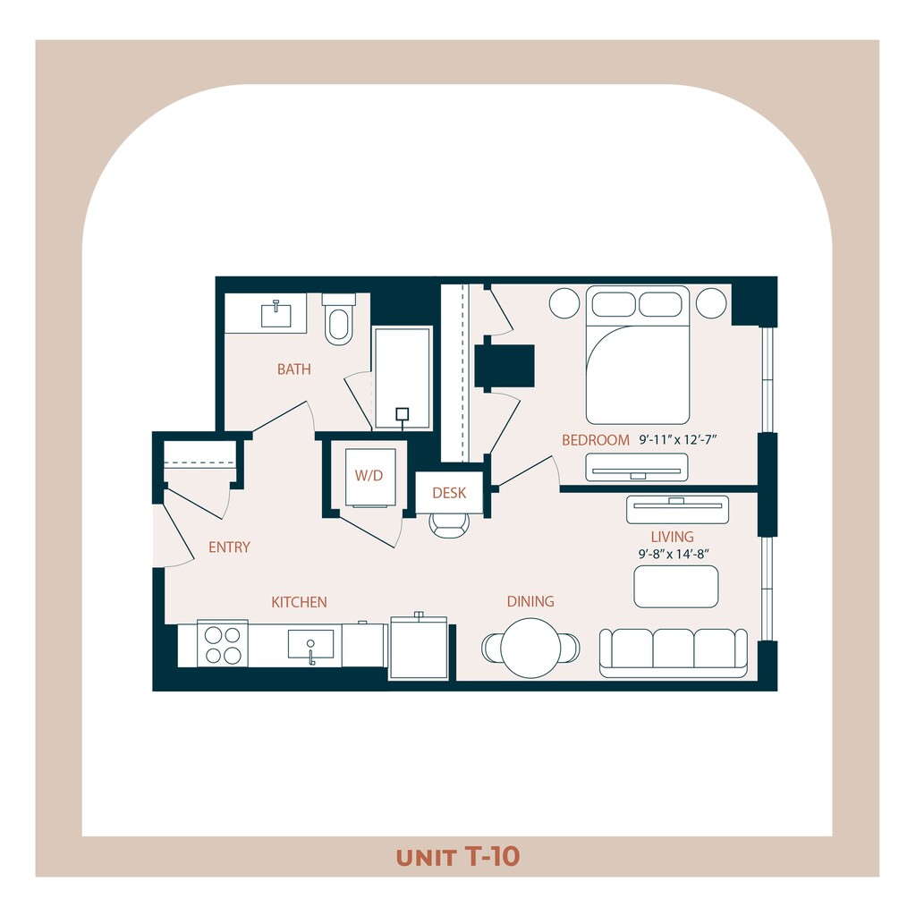 Apartment Model: T-09From $2,1801 Bedroom, 1 Bath, 544 sq ftAvailable NowFloor plans are artist's rendering. All dimensions are approximate. Actual product and specifications may vary in dimension or detail. Not all features are available in every rental home. Prices and availability are subject to change. Base rent is based on monthly frequency. Additional fees may apply, such as but not limited to package delivery, trash, water, amenities, etc. Deposits vary. Please see a representative for details.