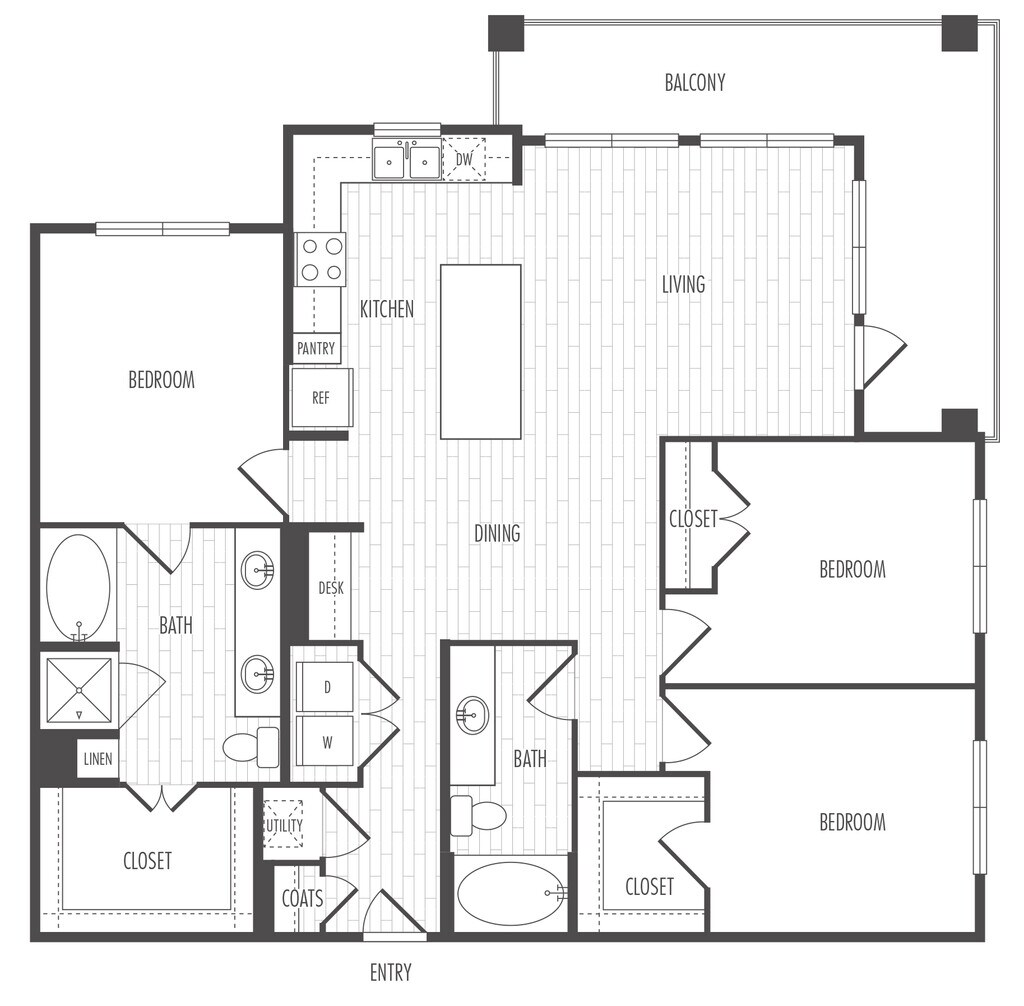 1 Bedroom to 3 Bedroom Apartments at The Warner currently range from $1,110 to $2,930