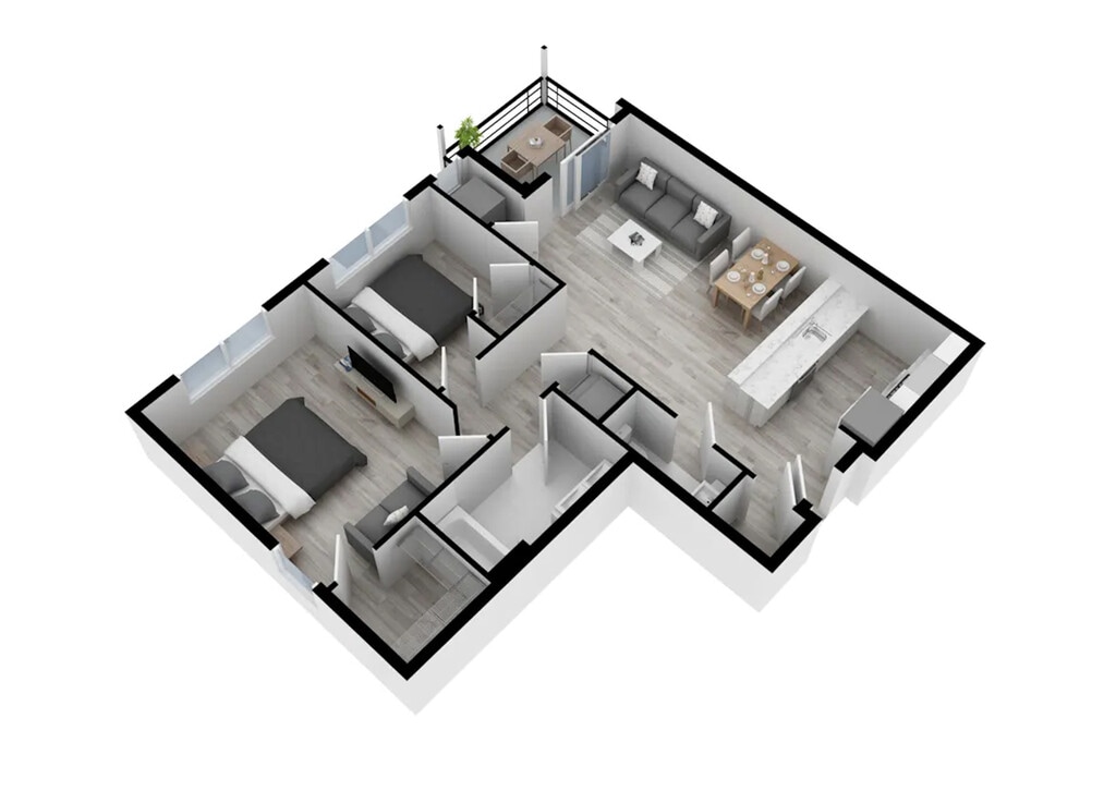 Apartment Model: 2 Bed / 1.5 Bath (Corner)From $2,4952 Bedroom, 1.5 Bath, 942 sq ftAvailable Now![]()