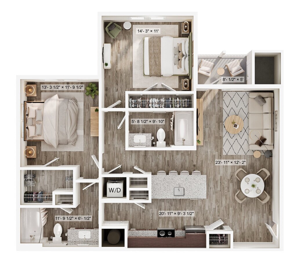 2 Beds, 2 Baths, 1148 sq ftAvailable Apr 1Model Gallery