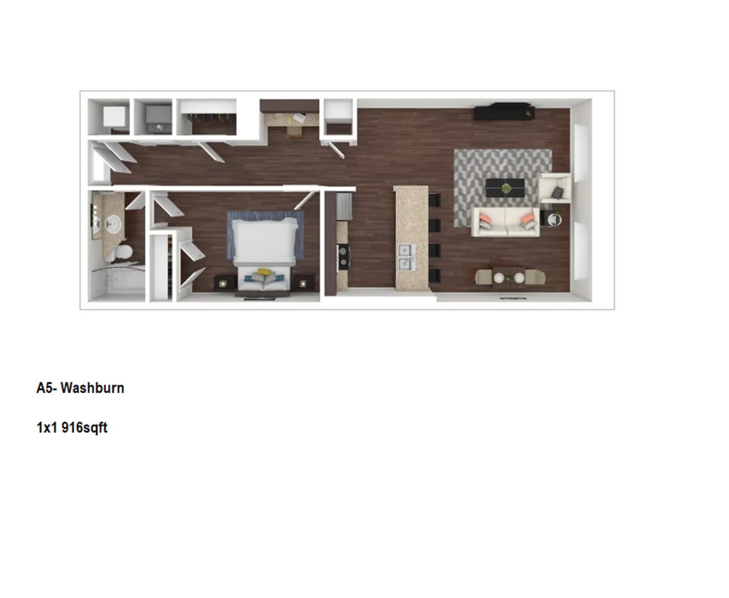 WAS-A5 - Floorplan 6 Apartment Unit: 509Apartment Model: WAS-A51 Bedroom, 1 Bath, 916 sq ftAvailable Now![]()