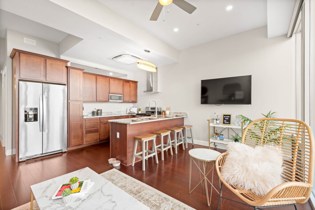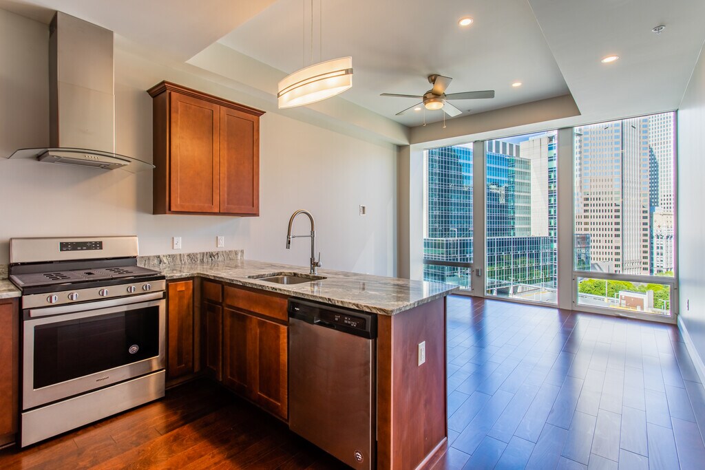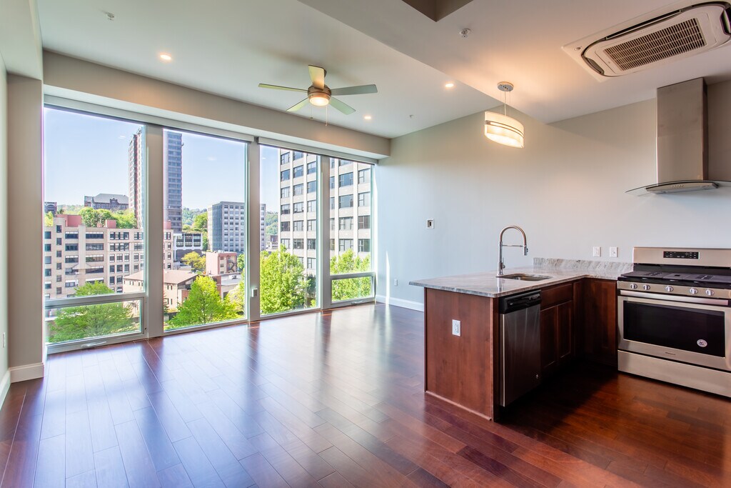 June 30, 2025The pros are the massive windows, new appliances, beautiful units, and decent common work space area. It’s close to the downtown area but right outside of it so you won’t get caught in downtown traffic. The cons are that it’s right next to the stadium and highway so it can get noisy (though usually there’s not much noise if there isn’t an event and you’re on the upper units), slow and perpetually out of service elevators.Review from Apartments.com