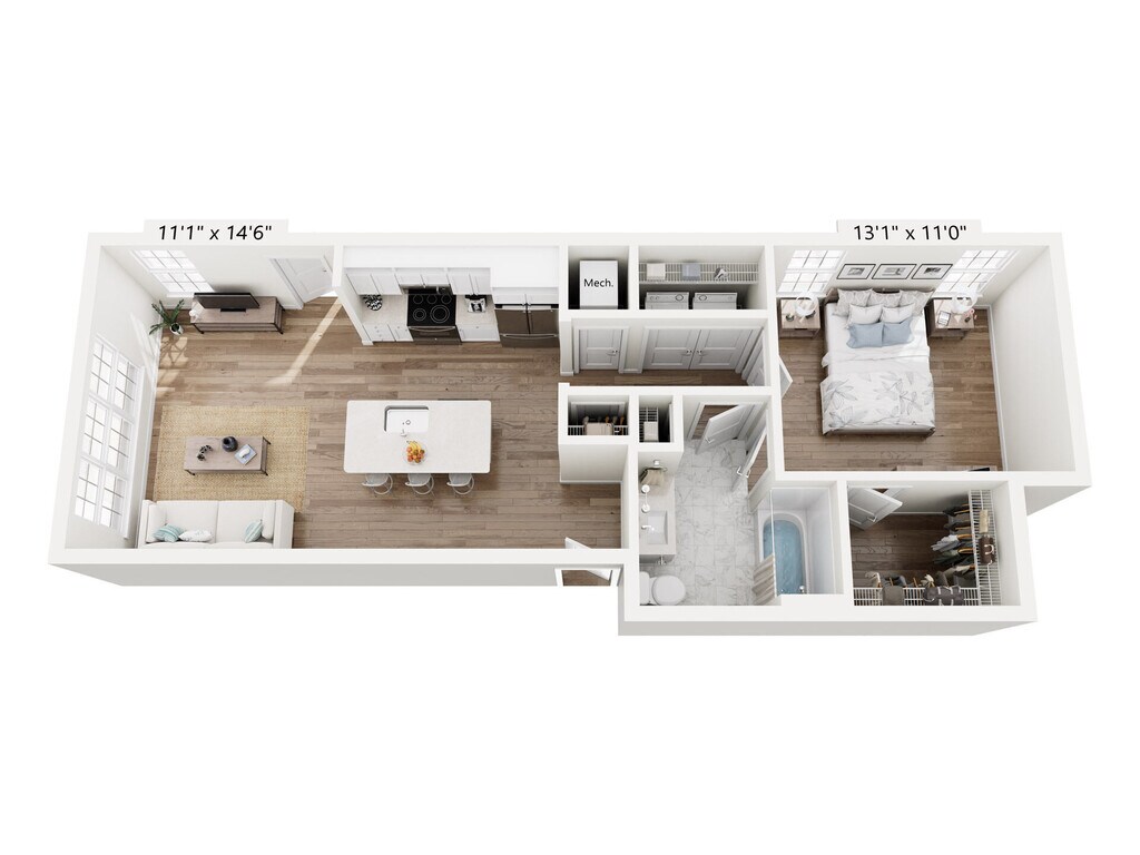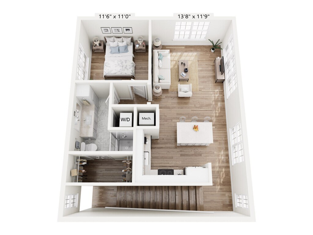 1 Bed, 1 Bath, 1263 sq ftAvailable NowLargest 1 BedroomThis is the largest 1 Bedroom at this PropertyModel Gallery