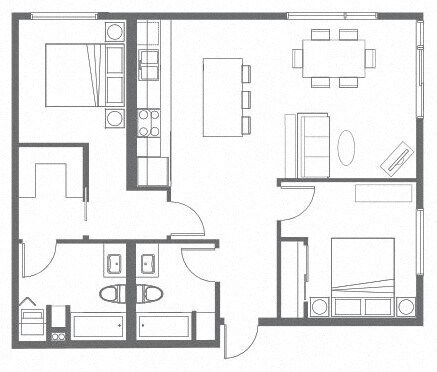 2x2D - Floorplan 1 Apartment Unit: 402Apartment Model: 2x2D2 Bedroom, 2 Bath, 1124 sq ftAvailable Now2x2B