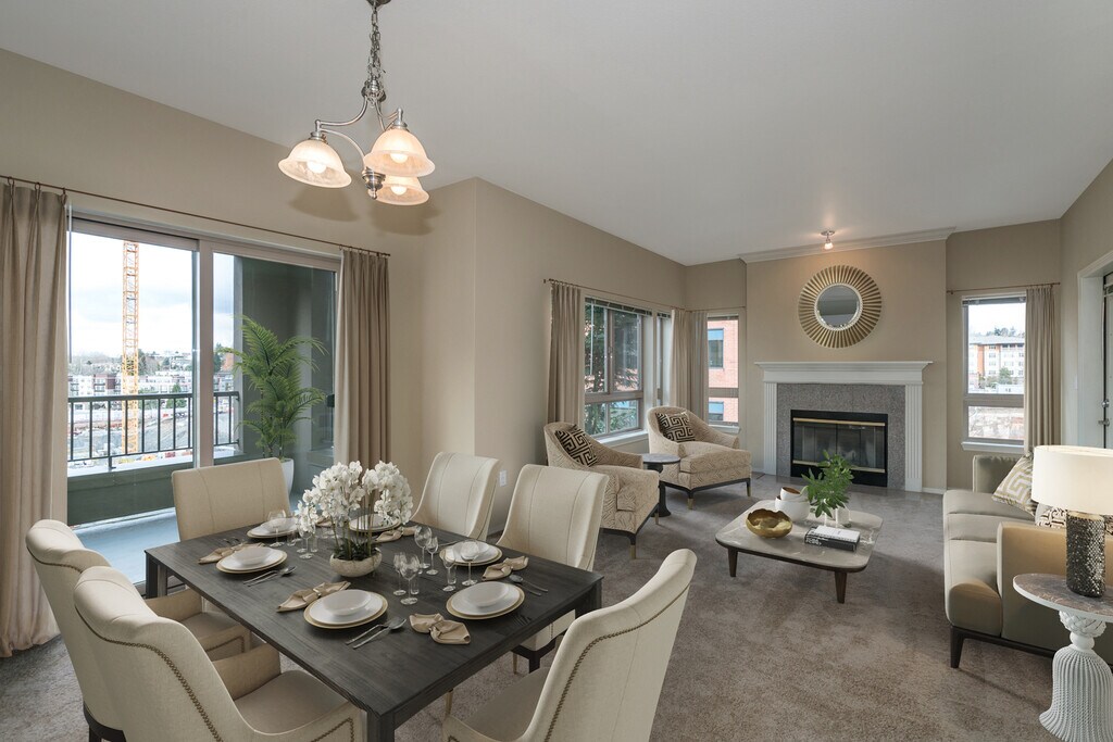 Living at The Watermark, you’re able to experience Kirkland’s irresistible combination of sophisticated culture and waterfront charm- without even getting into a car. Walking paths link The Watermark to the new Kirkland Urban, a collection of specialty shops, theaters, fine restaurants and a major grocery store. Downtown’s eclectic boutiques, remarkable galleries, restaurants with views and bistros rich with atmosphere are within walking distance. Kirkland’s marinas and spectacular waterfront parks are wonderfully scenic destinations. The library, post office, pool, transit center, freeway access and the Kirkland Performance Center are also conveniently located near The Watermark. The elegance of The Watermark apartment homes reveals nothing less than masterful quality, so rarely found in rental residences. Nine foot ceilings soar and large picture windows flank the walls, establishing an abundance of openness and light. Wood burning fireplaces, pantries, generously-sized walk-in closets and very private, covered decks are just some of The Watermark’s attributes. Homes overlook Kirkland’s attractive surroundings with Lake Washington beyond. Each apartment home also features a washer and dryer, raised-panel doors and cabinetry, and state-of-the-art high-speed phone lines. Lobbies are handsomely furnished and an elevator provides convenient access to underground parking.