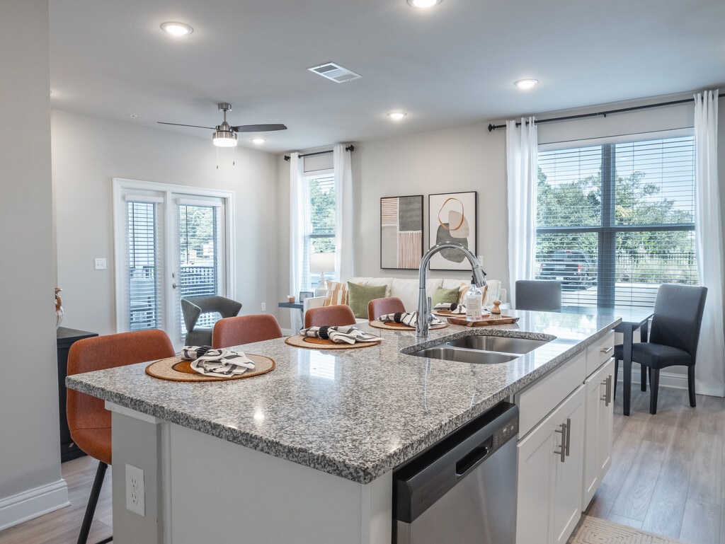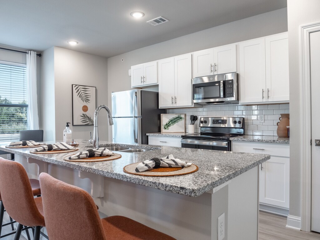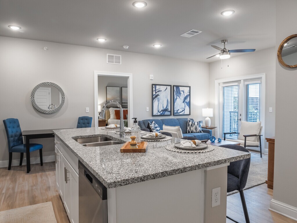 With easy access to the best of Crestview but still hidden from the stir of the city, The Waters at Redstone offers a new way of effortless living. Our nationally recognized team ensures your stay with us is nothing short of exceptional, and your apartment is nothing short of a home. Our interiors and amenities combine beauty with sensibility; every detail is made with you in mind. Residents will enjoy a 24-hour fitness center, Baja shelf pool, dog park, dog wash, outdoor gas grills, 24-hour game room, and easy access to local shopping and restaurants.