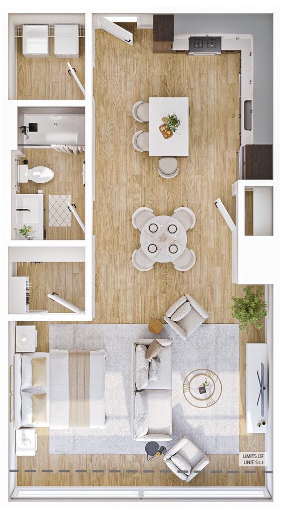 Apartment Model: S1.1From $1,825Studio, 1 Bath, 657 sq ftAvailable NowFloor plans are artist's rendering. All dimensions are approximate. Actual product and specifications may vary in dimension or detail. Not all features are available in every rental home. Prices and availability are subject to change. Base rent is based on monthly frequency. Additional fees may apply, such as but not limited to package delivery, trash, water, amenities, etc. Deposits vary. Please see a representative for details.