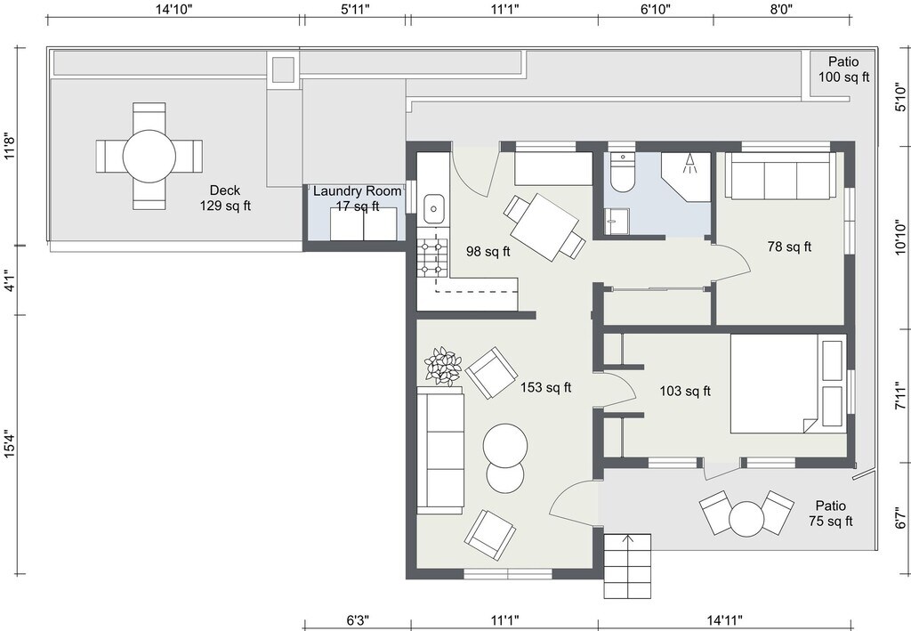 2 bd/1 ba stand alone with yard - Floorplan 2 ![]()