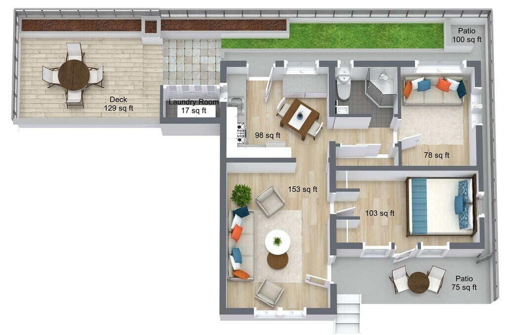 2 bd/1 ba stand alone with yard - Floorplan 7 ![]()