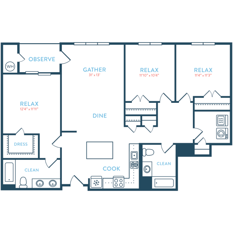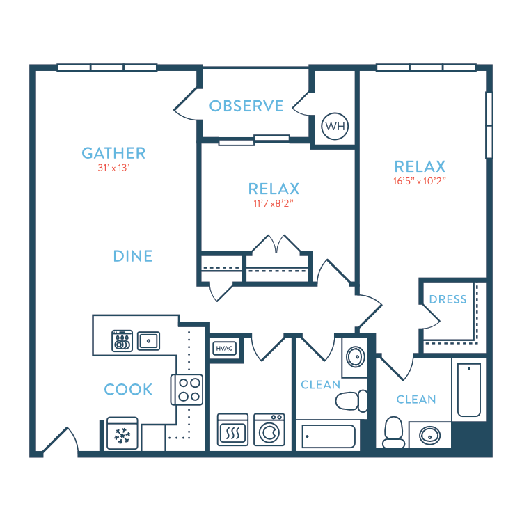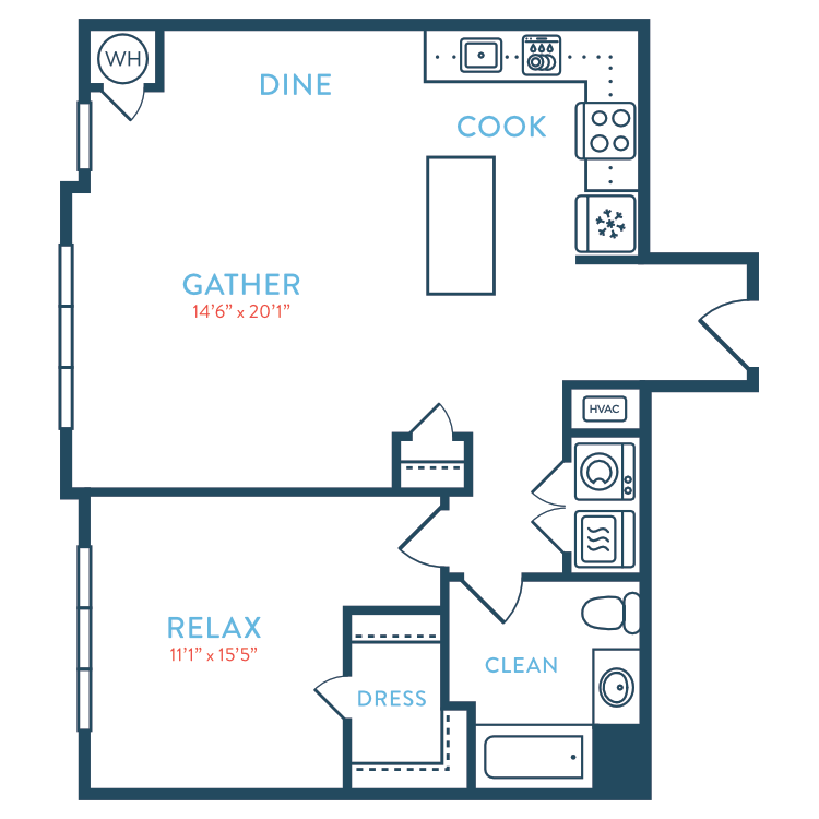 Apartment Model: 785-852 Waypointe A1From $2,5151 Bedroom, 1 Bath, 785-852 sq ftAvailable Now![]()