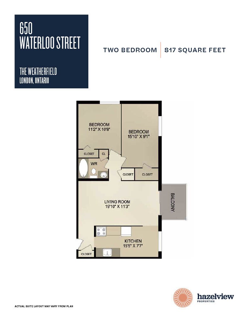 Newly Renovated Suites! Call our Leasing Experts Today and Book a Tour! Walk to everything, worry about nothing. Everything downtown London has to offer is available to you when you live at The Weatherfield. You're close enough to easily enjoy all the entertainment and convenience of Richmond Row but tucked away just enough to avoid the noise. Your new home is situated just a block and a half from beautiful Victoria Park and the scenic multi-use paths and parks along the Thames River are nearby. Explore Museum London, catch a game or show at Budweiser Gardens, shop at Covent Garden Market – all without worrying about parking. Public transit is close to your front door, making Western University and the rest of the city easily accessible.