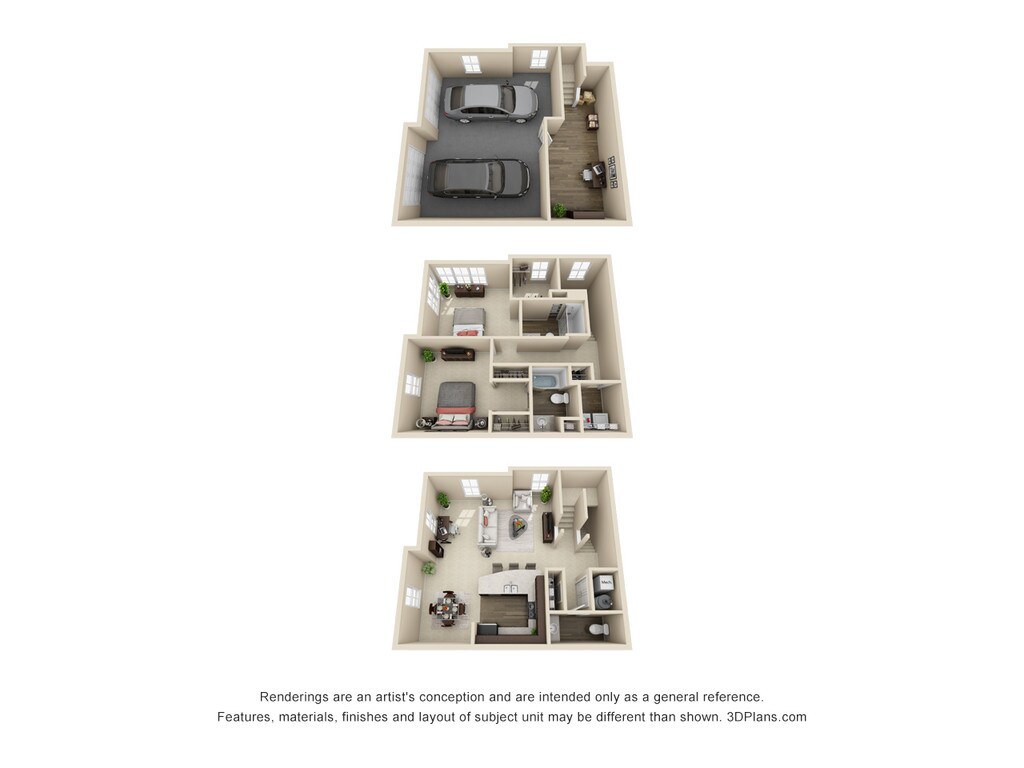 Apartment Model: The Kingston Townhome with Garage2 Bedroom, 2.5 Bath, 1720 sq ftAvailable Now![]()