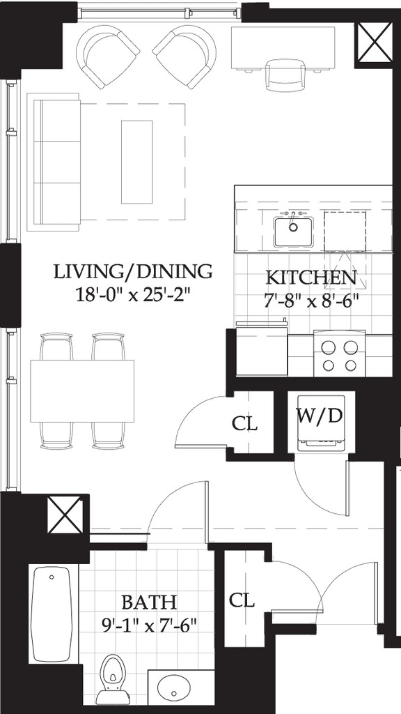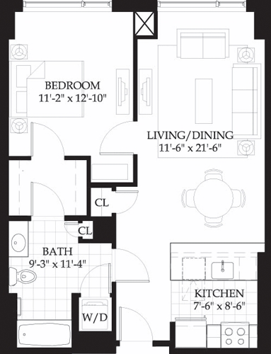 Studio, 1 Bath, 625 sq ftLargest StudioThis is the largest Studio at this PropertyModel Gallery