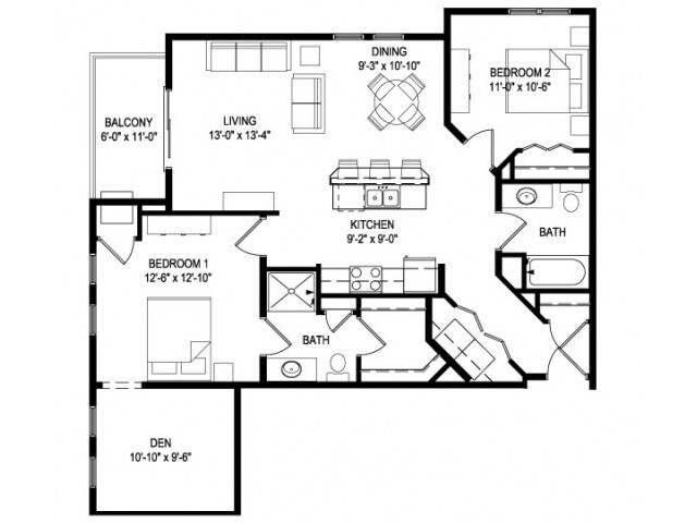 Apartment Model: 1 Bed/Den$1,7901 Bedroom, 1 Bath, 910-971 sq ftAvailable Now![]()