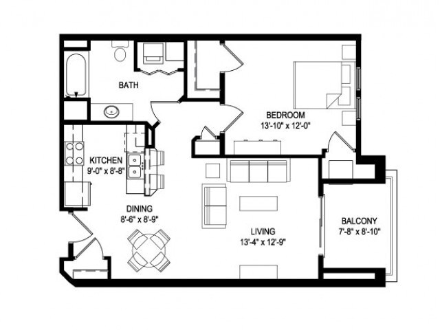 1 Bed 1 Bath - Floorplan 4 ![]()