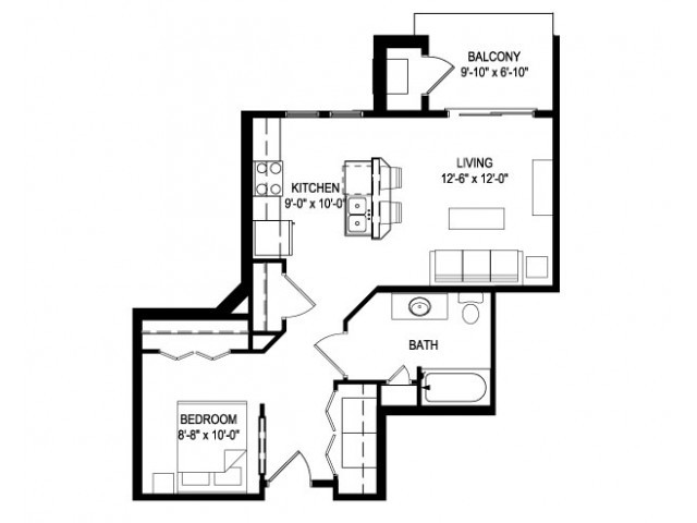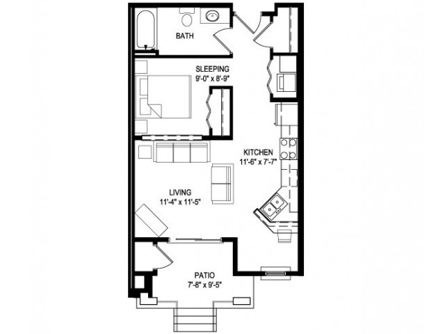 Studio 1 Bath - Floorplan 2 1 Bedroom
