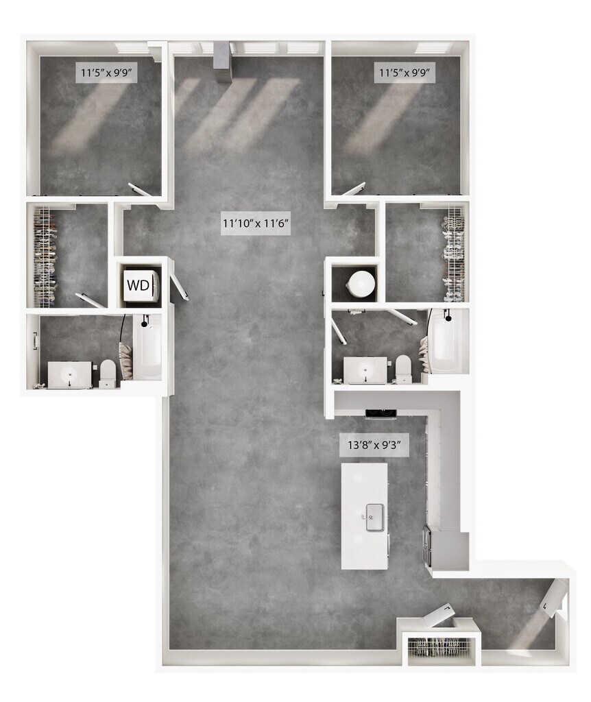 The Pilsner - Floorplan 2 Apartment Unit: 1346Apartment Model: The Pilsner$1,6501 Bedroom, 1 Bath, 745 sq ftAvailable February 12, 20262 Bedrooms