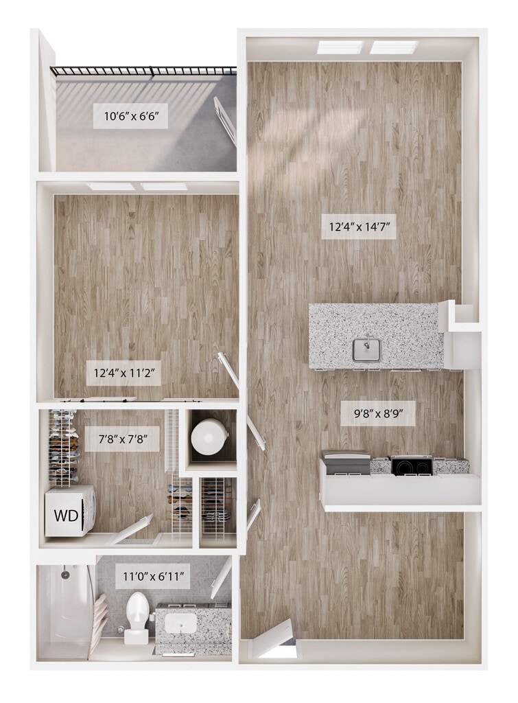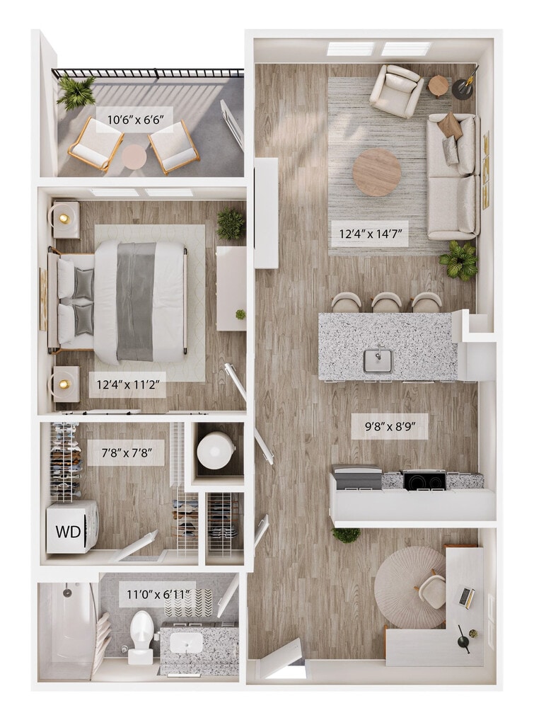 1 Bed, 1 Bath, 745 sq ftAvailable February 12, 2026Largest 1 BedroomThis is the largest 1 Bedroom at this PropertyModel Gallery