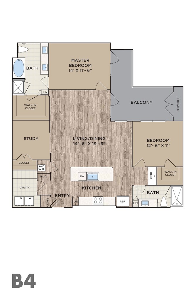 1 BED / 1 BATH - Floorplan 1 1 BED / 1 Bath + Study