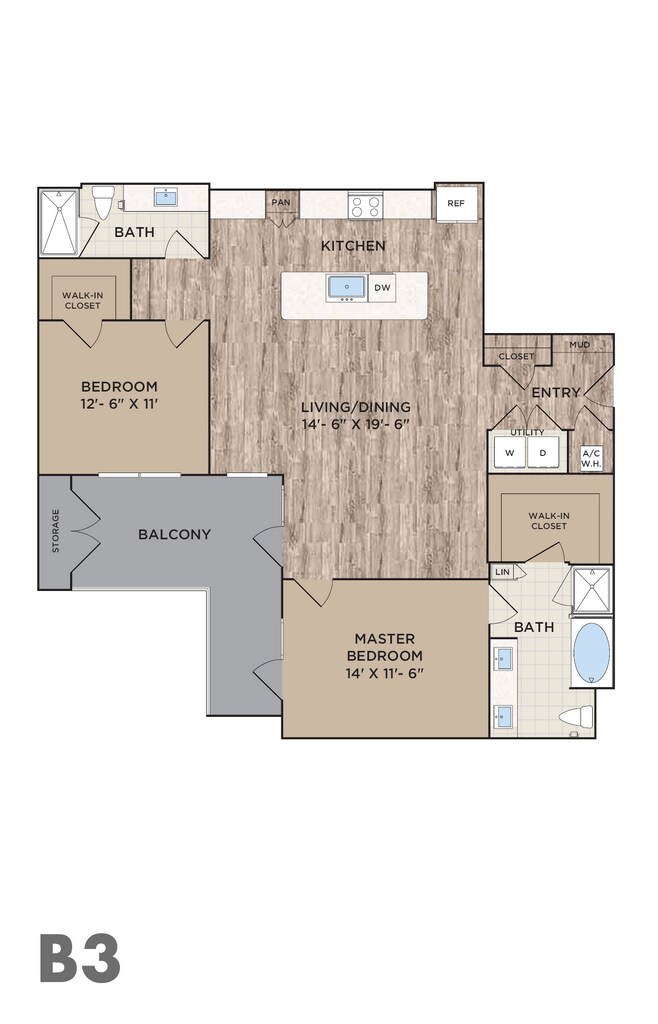 1 BED / 1 BATH - Floorplan 6 1 BED / 1 BATH