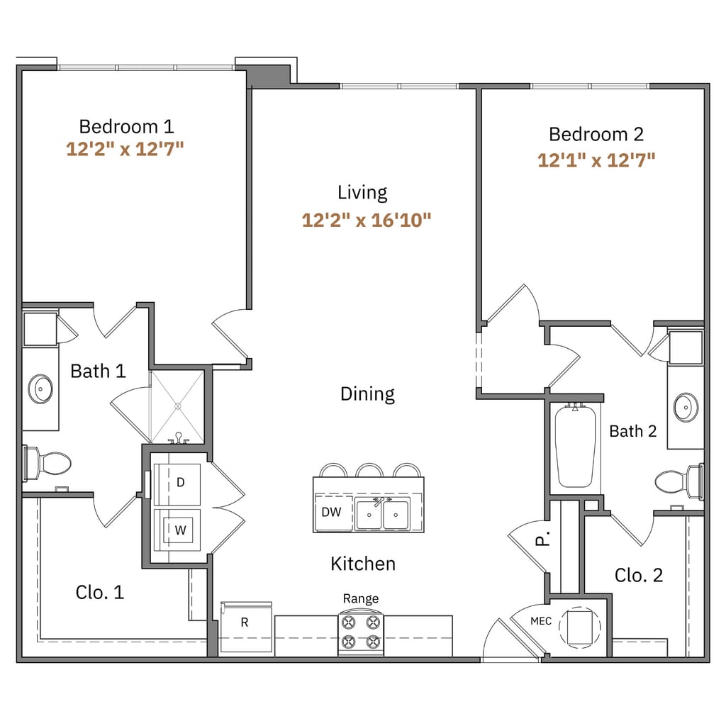 1 Bed, 1 Bath, 809-866 sq ftAvailable NowModel Gallery