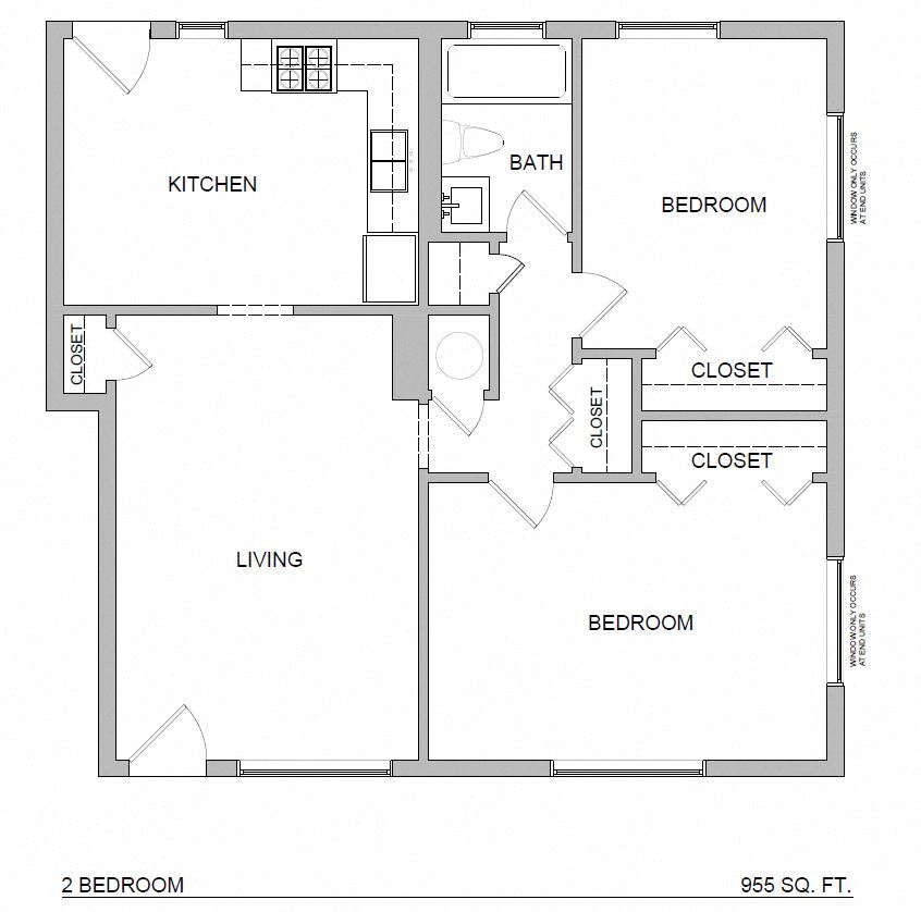 2 Beds, 1 Bath, 955 sq ftAvailable NowModel Gallery