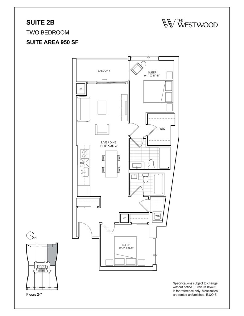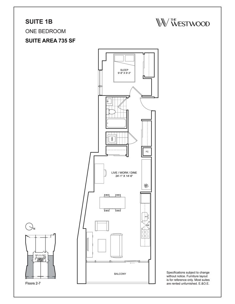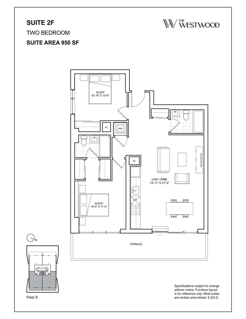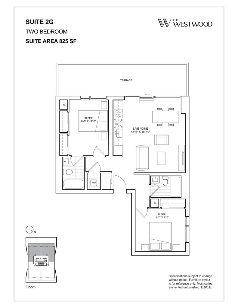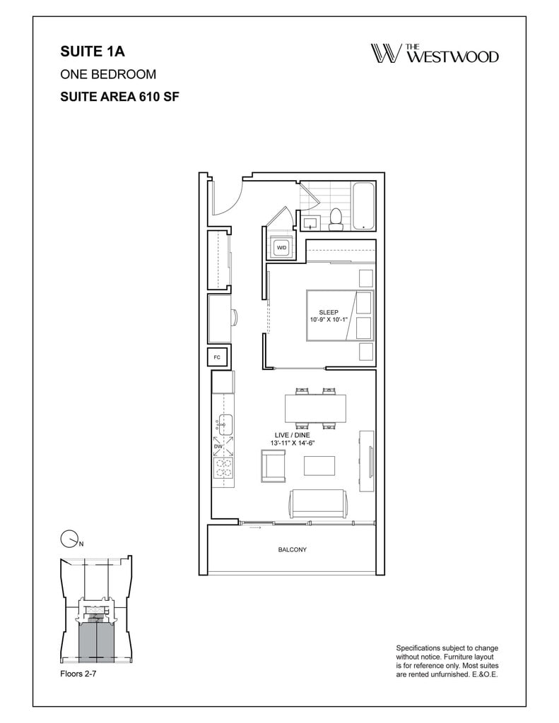 The Westwood offers 1 to 3 Bedroom apartments having 685–1,135 sqft. Here is the current pricing and availability: