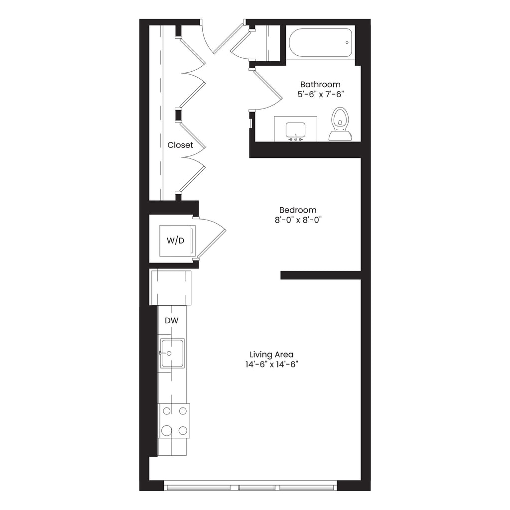 Studio, 1 Bath, 538 sq ftAvailable NowModel Gallery