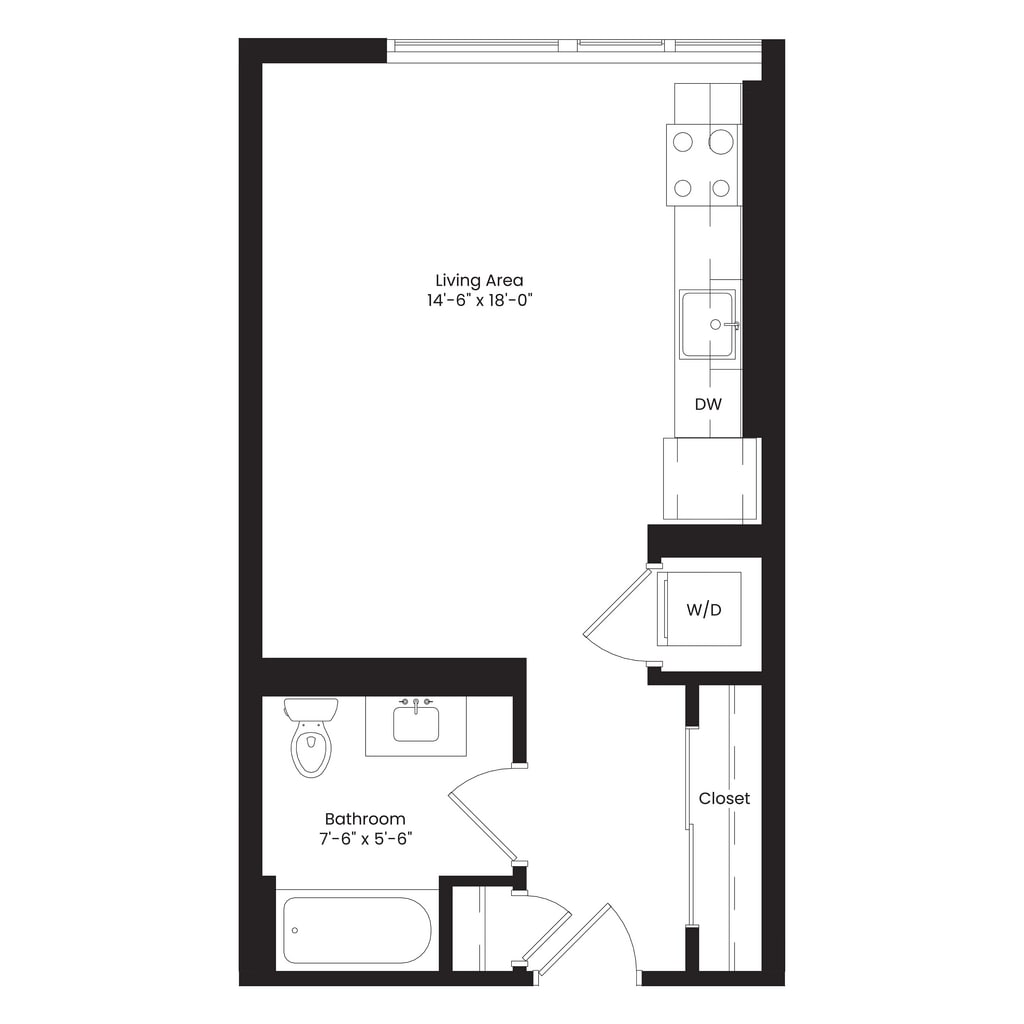 Studio, 1 Bath, 487 sq ftAvailable NowAvailability Details