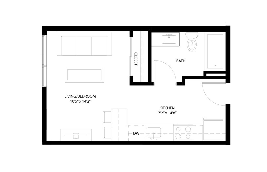 Studio, 1 Bath, 425 sq ftPlus FeesAvailable NowModel Gallery