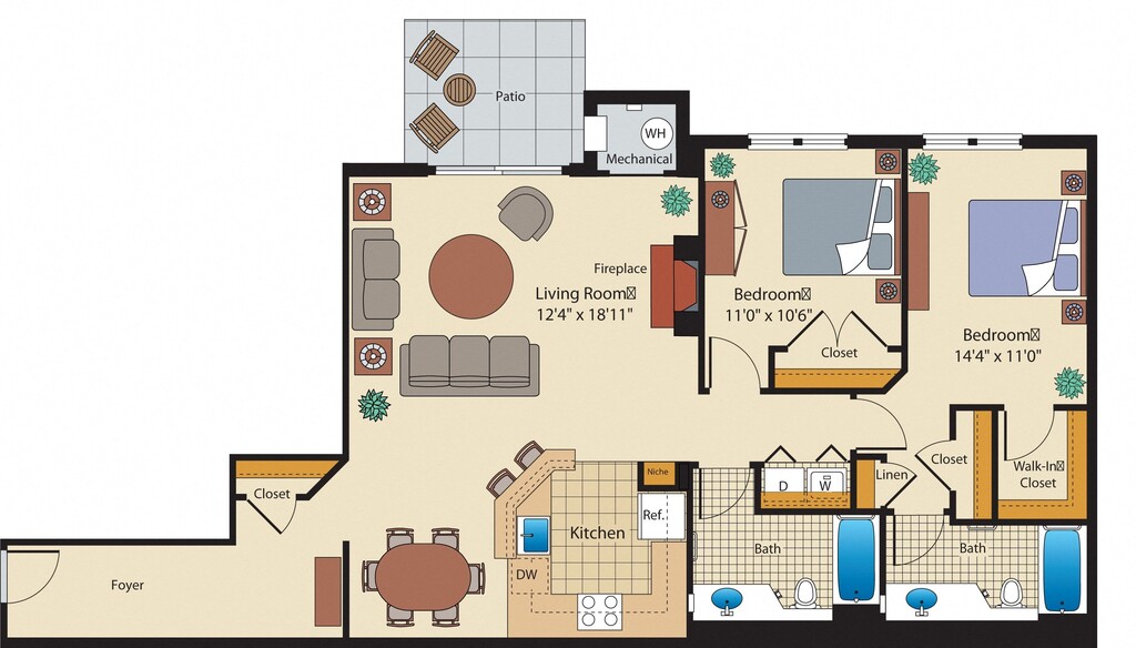 1 Bed, 1 Bath, 692 sq ftAvailable NowModel Gallery