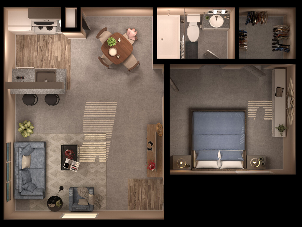 Apartment Model: 1 bed/1 bath$8791 Bedroom, 1 Bath, 553 sq ftUnavailable![]() - 1 bed/1 bath - Floorplan 1
