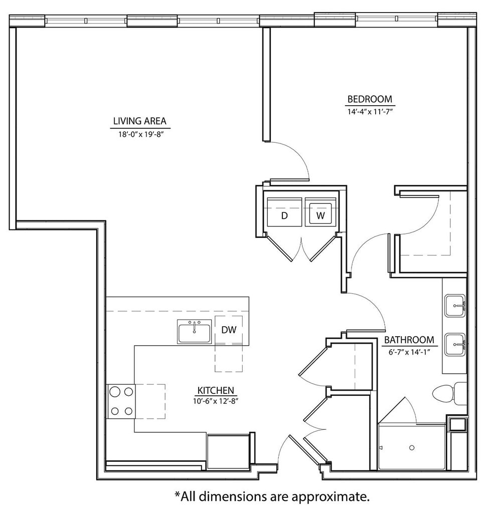 1L - Floorplan 1 Apartment Unit: 620Apartment Model: 1L$1,8751 Bedroom, 1 Bath, 687 sq ftAvailable December 13, 20251E (Den)