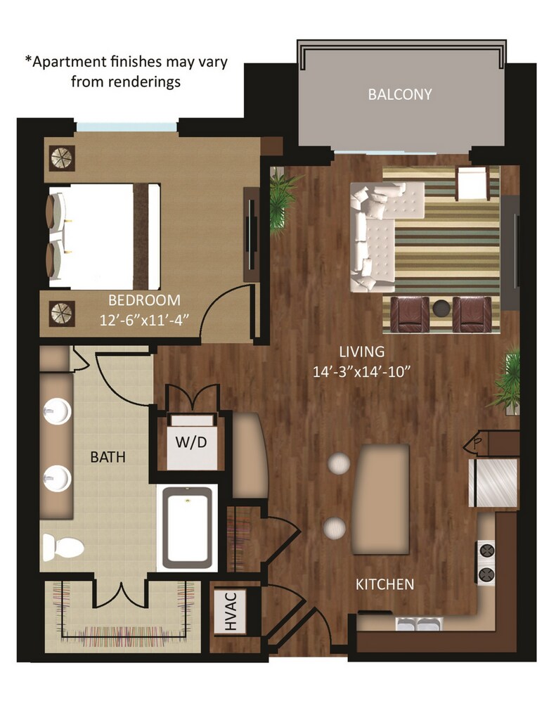 Studio, 1 Bath, 525 sq ftModel Gallery