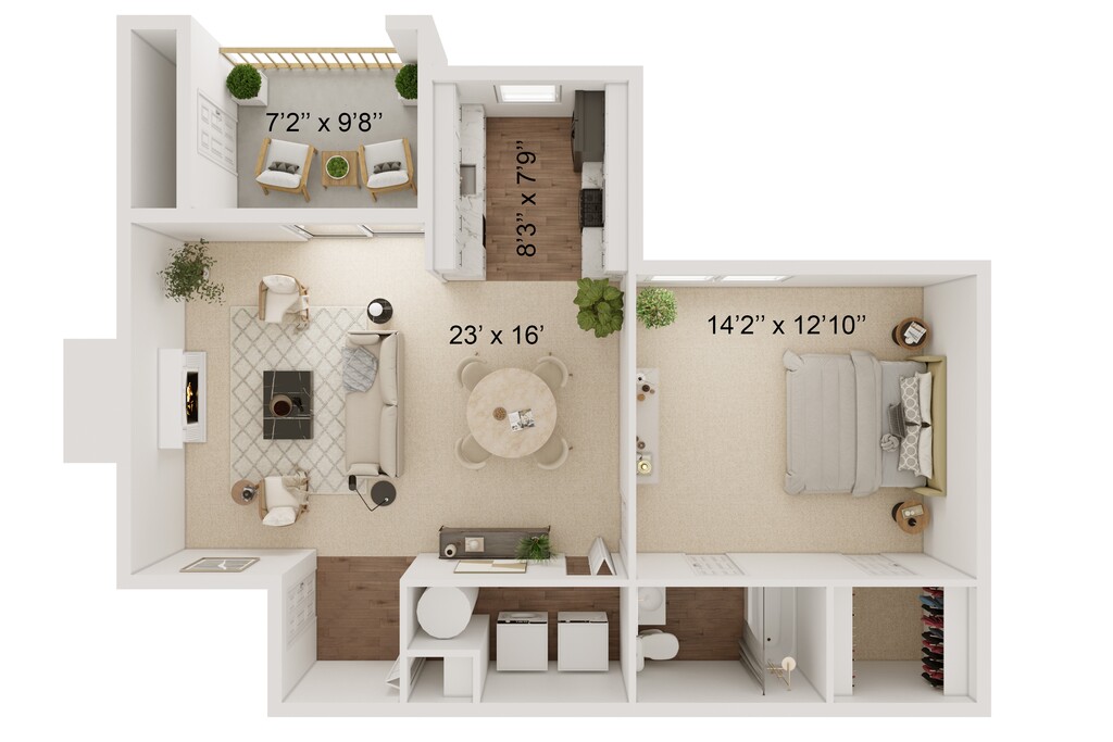 1 Bed, 1 Bath, 762 sq ftModel Gallery