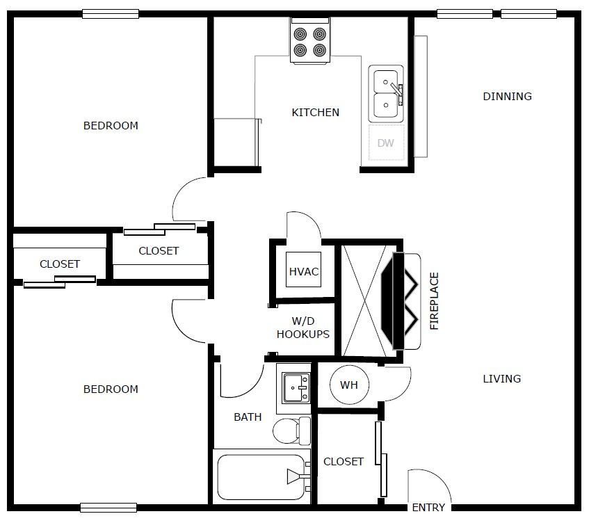 2 Beds, 1 Bath, 760 sq ftAvailable NowModel Gallery