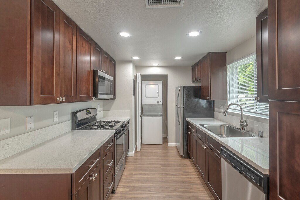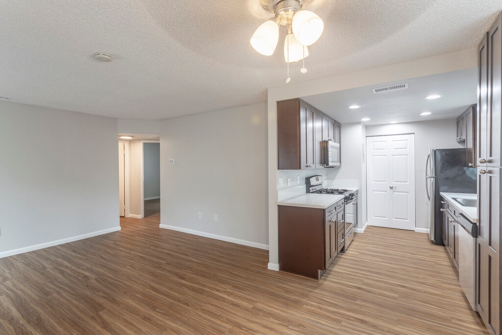 March 28, 2013My husband and I moved in and three bedroom/two bathroom about two months ago, and we love it. The unit is very nice, only down side is if you get a until with a washer and dryer, you can only wash or dry at a time not both and they a fairly small. the fridge is pretty spaceous and there is a great amount of food storage. The bedrooms are spaceous also along with closet space. The neighboorhood is pretty good, alot of stores close by. the parking is covered which is good also when you have guest ...there is guest parking sometimes that is hard to find in most communities. the area is very quiet, kids around during the day but at night its very quiet. beautiful and clean around the community dumpsters very convient and accessable.Read MoreReview from Apartments.com