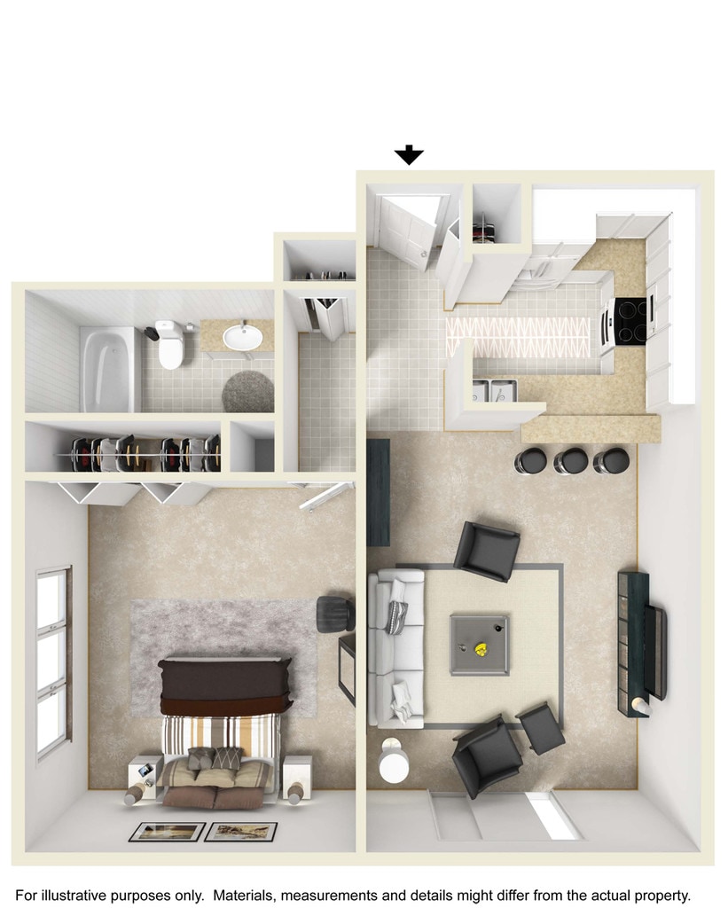 Northwood - 1 Bedroom/1 Bath - Floorplan 2 2 Bedrooms