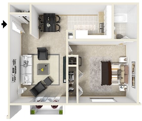 Willows - 1 Bedroom/1 Bath - Floorplan 8 Northwood - 1 Bedroom/1 Bath