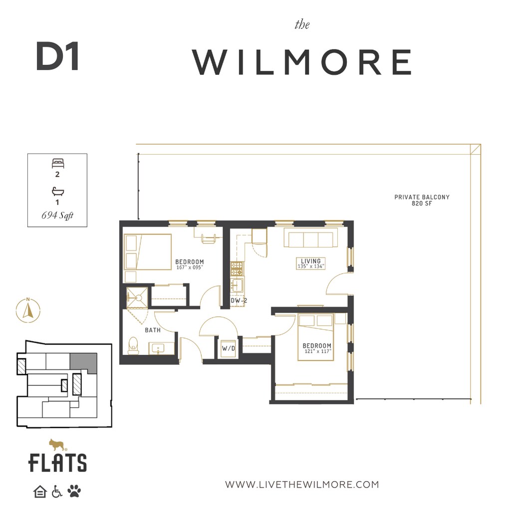 The Wilmore offers 1 to 2 Bedroom apartments starting from $2,225 and having 560–694 sq ft. Here is the current pricing and availability: