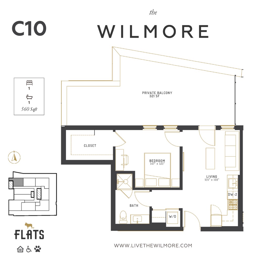 C10 - Floorplan 1 Apartment Unit: 519Apartment Model: C10$2,2251 Bedroom, 1 Bath, 560 sq ftAvailable November 30, 2025![]()