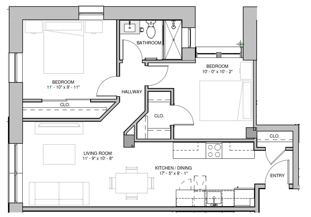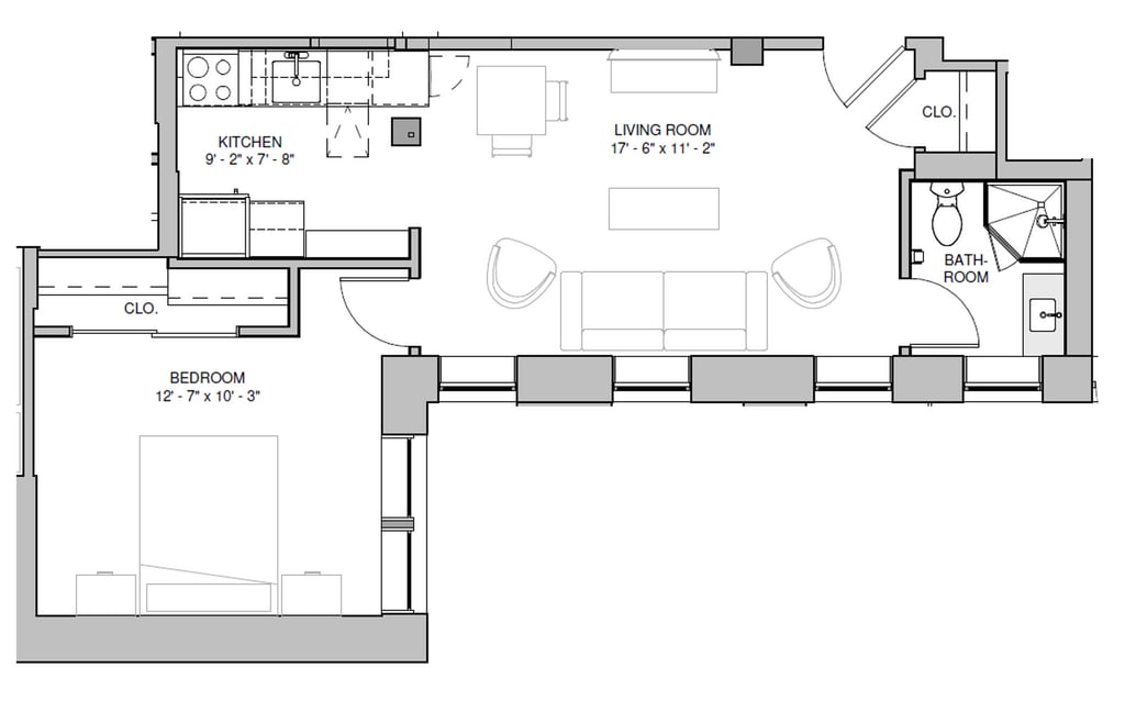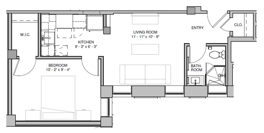 1C - Floorplan 1 Apartment Unit: 2116-103Apartment Model: 1C$2,8001 Bedroom, 1 Bath, 496 sq ftAvailable Now![]()