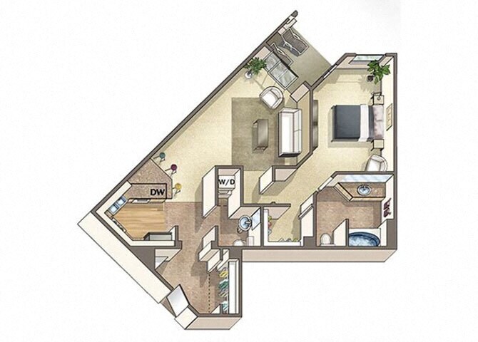 1 Bed, 1.5 Baths, 890 sq ftLargest 1 BedroomThis is the largest 1 Bedroom at this PropertyModel Gallery