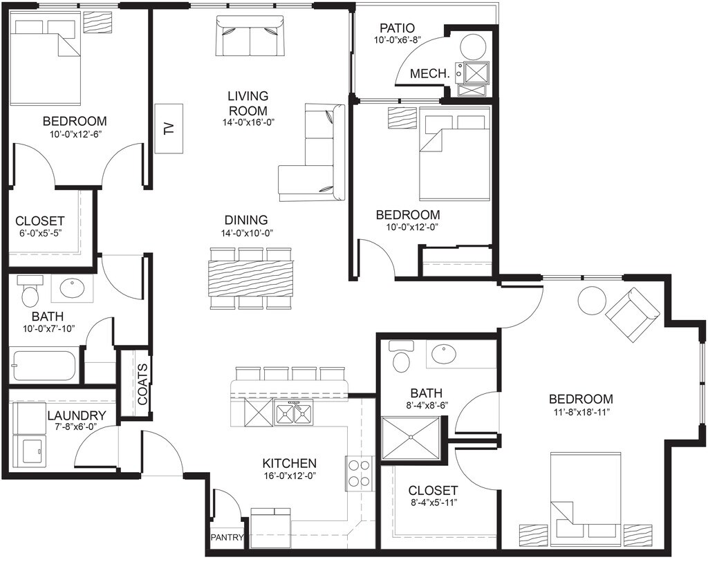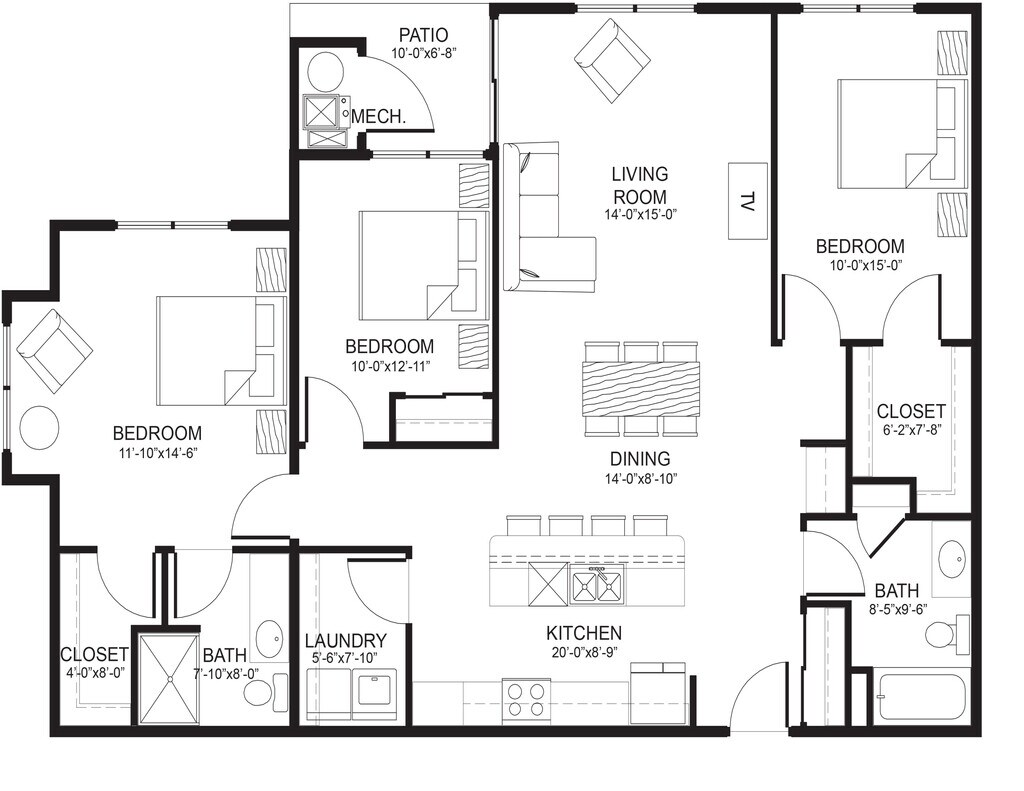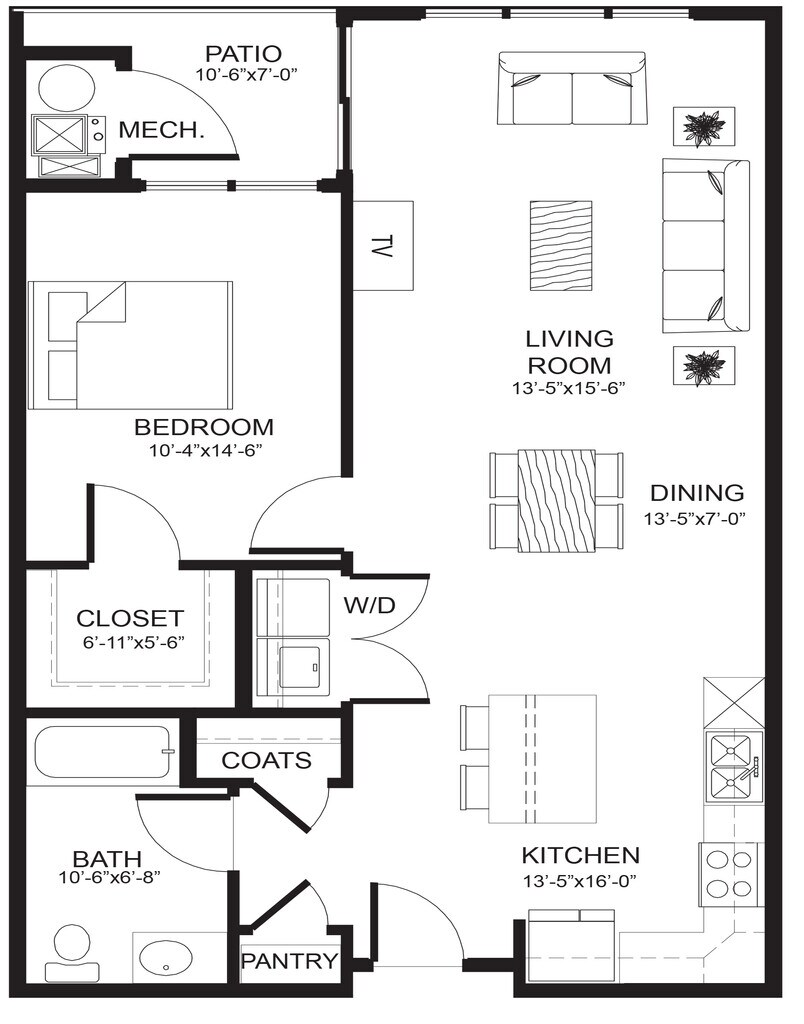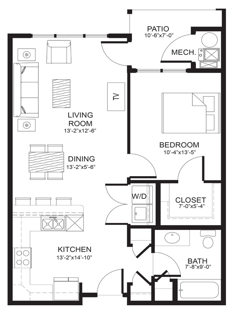 1 Bed, 1 Bath, 706 sq ftAvailable NowModel Gallery