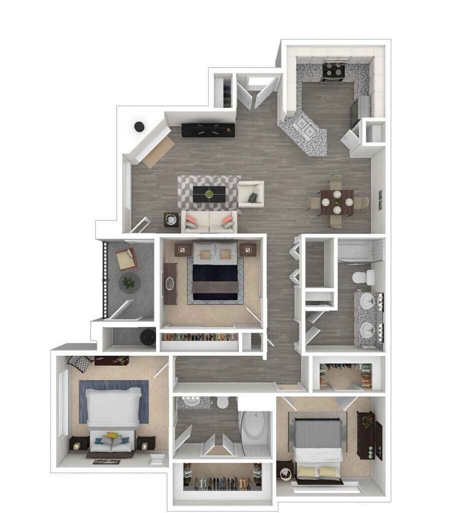 Manchester - Floorplan 2 Apartment Unit: 718-0718Apartment Model: Manchester$2,8792 Bedroom, 2 Bath, 1060 sq ftAvailable December 2, 20253 Bedrooms