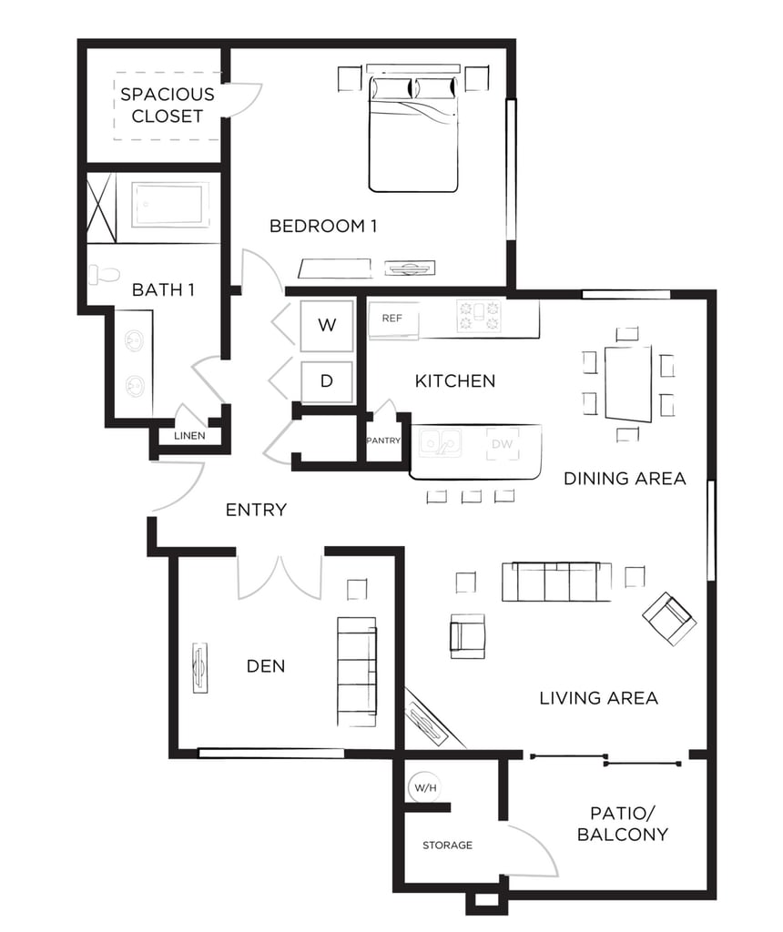 1 Bed, 1 Bath, 714 sq ftModel Gallery