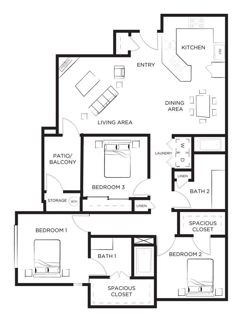 Apartment Model: HudsonCall For Rates3 Bedroom, 2 Bath, 1247 sq ftUnavailable![]()